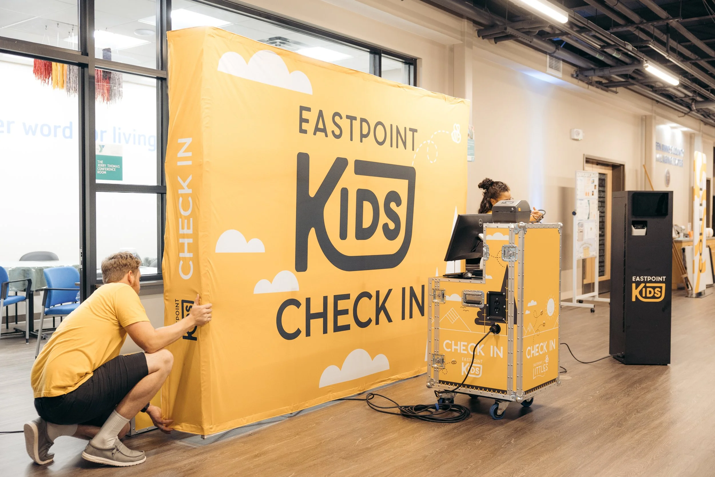 Every Sunday morning our Set Up team creates an environment of worship in the YMCA gym. Basketball courts transforming to holy ground, then every afternoon, our Tear Down team returns it to a bustling gym.